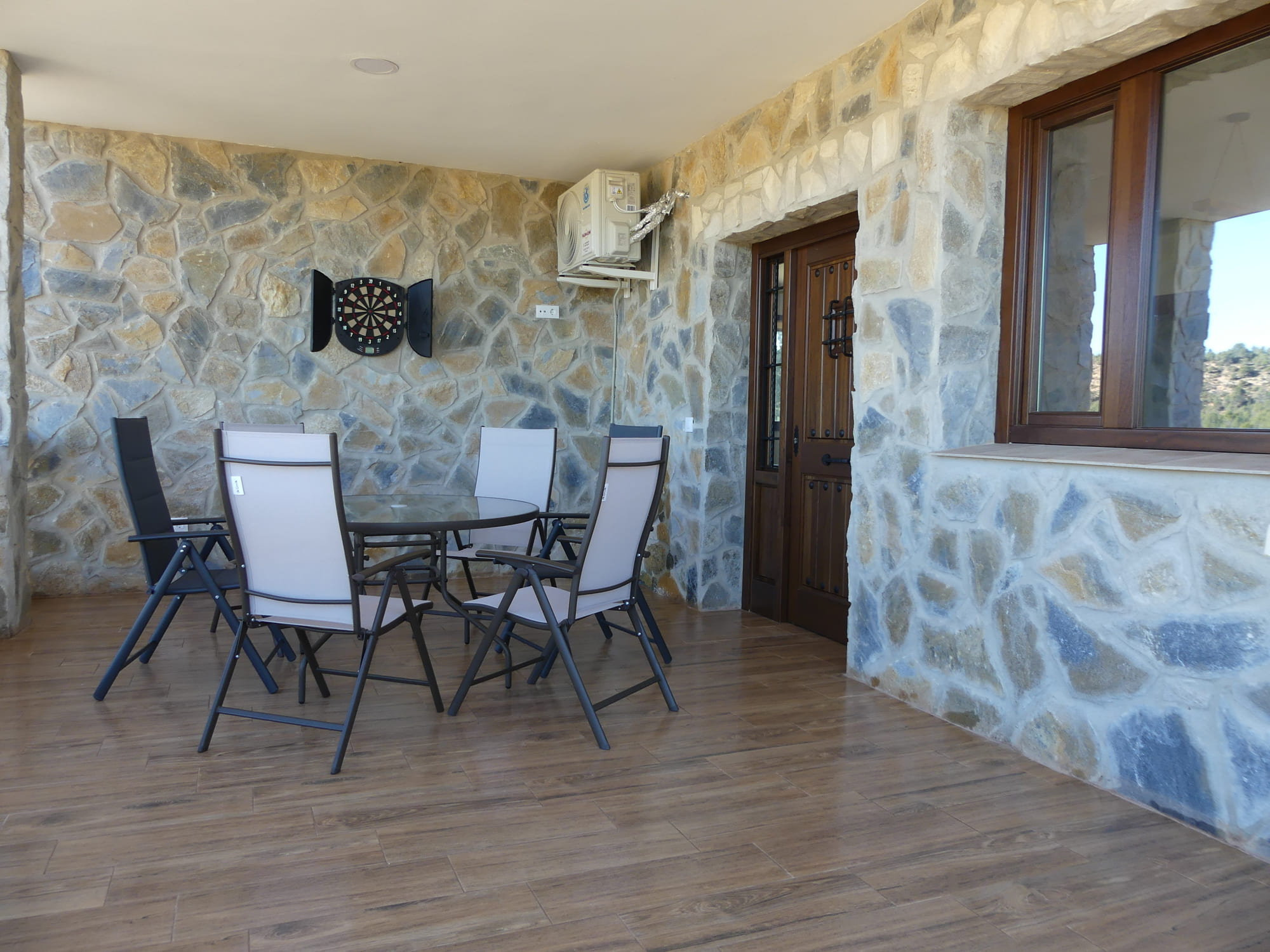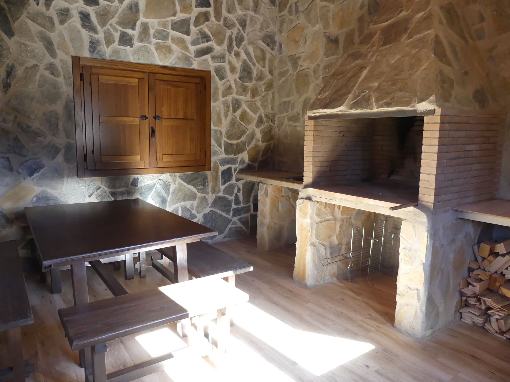 La casa dispone de chimenea de leña y aires acondicionados para crear un clima de confort tanto en invierno como en verano. El alquiler de la casa es completo.