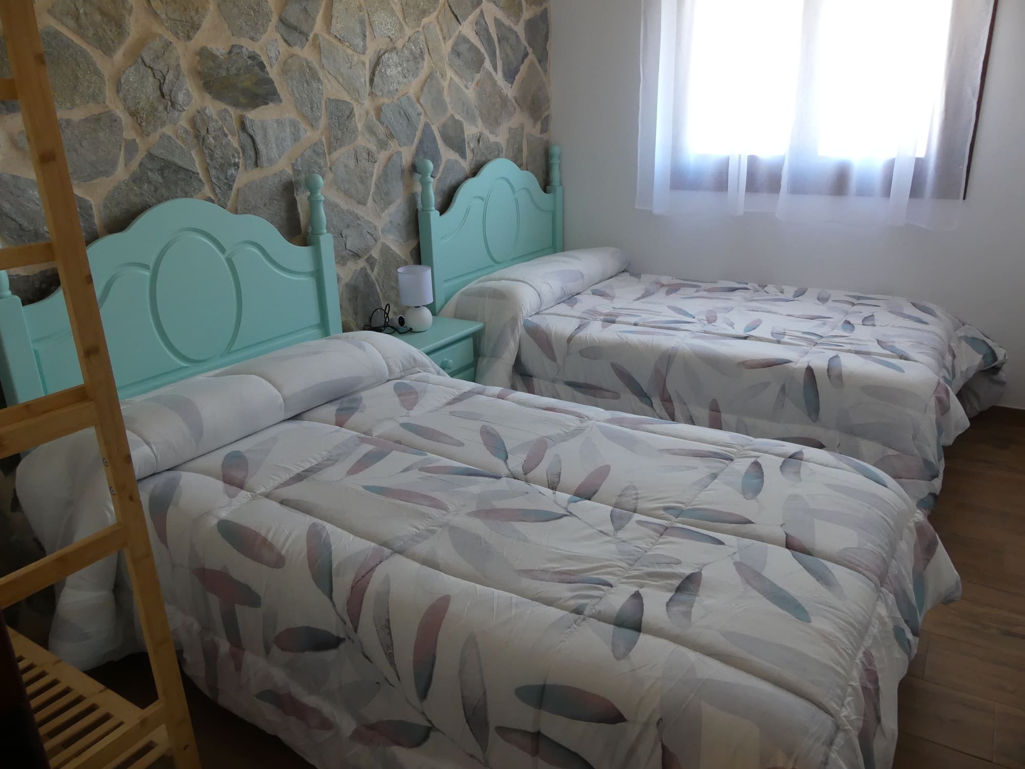 La vivienda completa se encuentra en una sola planta, a la que se accede por escalera o rampa, ubicada estratégicamente en altura para no perder las maravillosas vistas que ofrece el entorno. Dispone de salón con chimenea y amplios ventanales que permiten disfrutar de las bellas vistas. Cuenta con cocina completamente equipada (vitrocerámica, frigorífico con congelador, lavavajillas, lavadora, horno, microondas, exprimidor, batidora, tostadora, cafetera italiana y amplio menaje de cocina). La vivienda tiene 3 habitaciones, 1 habitación de matrimonio con baño individual, 1 habitación de matrimonio y 1 habitación con dos camas individuales, 2 baños y lavadero. La casa goza de terraza exterior con vistas a la montaña y jacuzzi.